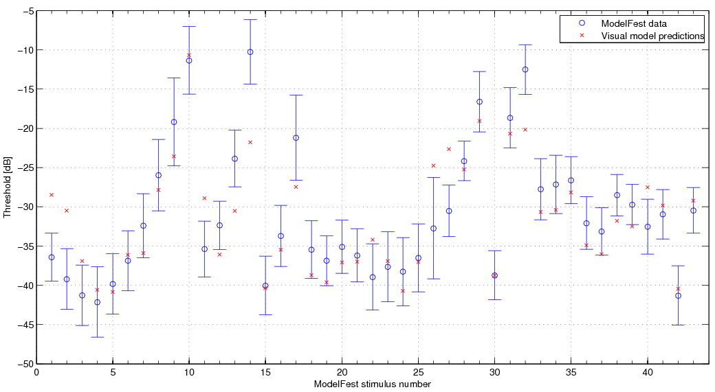 ModelFest is a standard data set created to calibrate and validate visual metrics. It contains 43 small detection targets at a uniform background of 30 cd/m2.
